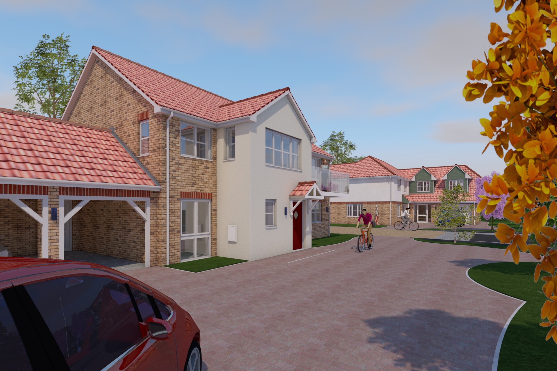 The development offers a range of homes from smaller bunglaows to large family houses and are all equipped with the latest air sourced heat pump technology. Unusually, and in contrast to most developers, we have complied with government environmental standards not by reducing window areas but rather by increasing the levels of insulation that we provide throughout the structure. Our homes are therefore warm and cosy but they also feel unusually light and spacious - come and see the difference for yourself.